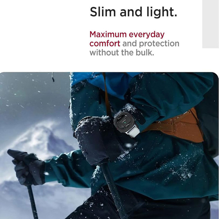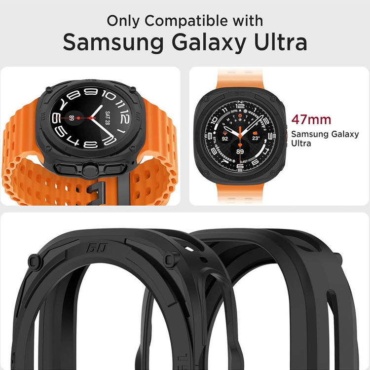 کاور واچ من مدل Bumper ،مناسب برای ساعت هوشمند سامسونگ Galaxy Watch 7 Ultra 47 mm بدنهای از جنس پلیکربنات دارد. این متریال نسبت به TPU سختتر بوده و با اینکه نسبت به آن انعطافپذیری کمتری دارد ولی محافظ قویتر و مستحکمتری محسوب میشود. هرچند سخت بودن این کاور اختلالی در نصب آن ایجاد نمیکند و با کمی دقت میتوان به آسانی آن را روی ساعت نصب نمود. برشکاری دقیق کاور در قسمت دکمهها و پورتها سبب شده تا در دسترسی به آنها محدودیتی ایجاد نشود. علاوه بر این ضخامت کم این محصول واچ شما را بیش از حد برجسته نمیکند و کاملا با ابعاد ساعت هماهنگ است.