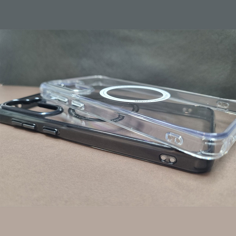 این کاور طلقی و شفاف بوده که درون آن حلقه مگ سیف کار گذاشته شده است و بر عکس جنس های tpu زرد نمی شود . دکمه های کارشده قاب فلزی بوده و دور قاب ژله ای می باشد .