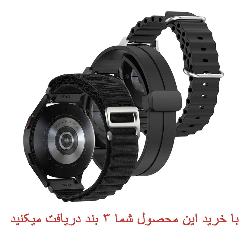 بند واچ من مدل SAM 3loop-new مناسب برای ساعت هوشمند سامسونگ Galaxy Watch 4 40mm / 4 44mm / 5 40 mm / 5 44 mm / 5 pro / 6 40 mm / 6 44 mm / 6 43 mm / 6 47 mm / 7 40 mm / 7 44 mm با ترکیبی از زیبایی، عملکرد و دوام، یک انتخاب عالی در میان محصولات اکسسوری بهشمار میرود. این محصول نه تنها جذاب است، بلکه بهخوبی نیازهای روزمره شما را نیز پوشش میدهد.