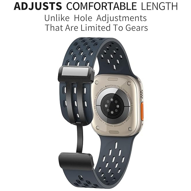 بند واچ من مدل Summer Sport-mag با طراحی بینظیر خود نه تنها ظاهر ساعت شما را ارتقا میبخشد، بلکه راحتی در استفاده را نیز به ارمغان میآورد. این بند مناسب برای اپل واچهای سایز 42 / 44 / 45 / 49 میلیمتری، بهطور مستقل قابلیت تنظیم سایز را نیز فراهم کرده است.