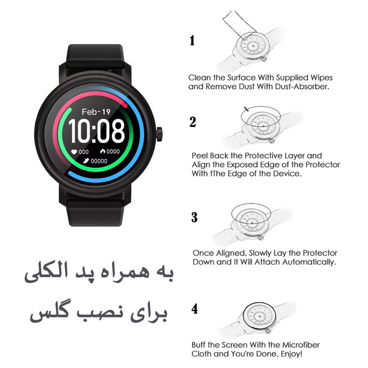 محافظ صفحه نمایش شیشه ای واچ من مدل SH-WM دارای مزایایی مانند ضد خط و خش ، نیفتادن حباب روی صفحه نمایش ، ضد باکتری و جرم و نامرئی بودن آن است. این نوع محافظ صفحه ضخامت بسیار کمی دارد بنابراین ظاهر ساعت شما را چندان تغییر نمی دهد. نصب این نوع محافظ صفحه نیاز به دقت دارد.
