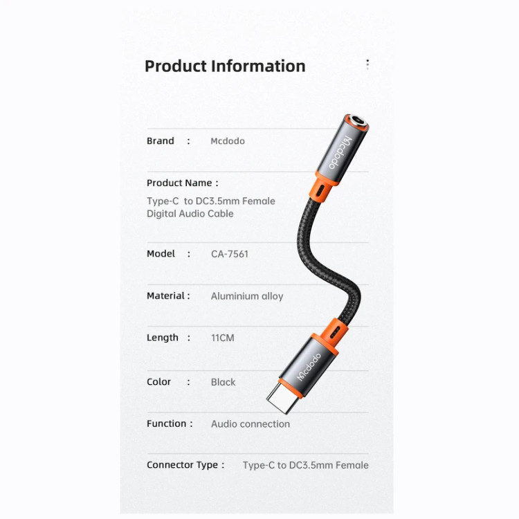 مبدل USB-C به جک 3.5 میلیمتری مک دودو مدل CA-7561 با طراحی ارگونومیک و استفاده از متریال مرغوب، انتخابی عالی در میان محصولات اکسسوری محسوب میشود. این محصول با دوام بالا و ظاهر زیبا، تجربهای متفاوت را برای مصرفکننده فراهم میکند.