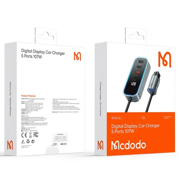 شارژر فندکی مک دودو دارای طراحی مینیمال و مدرن است که با هر خودرویی ست میشود. بدنه این محصول از جنس مواد ساخته شده که در برابر حرارت و ضربه مقاومت دارند.