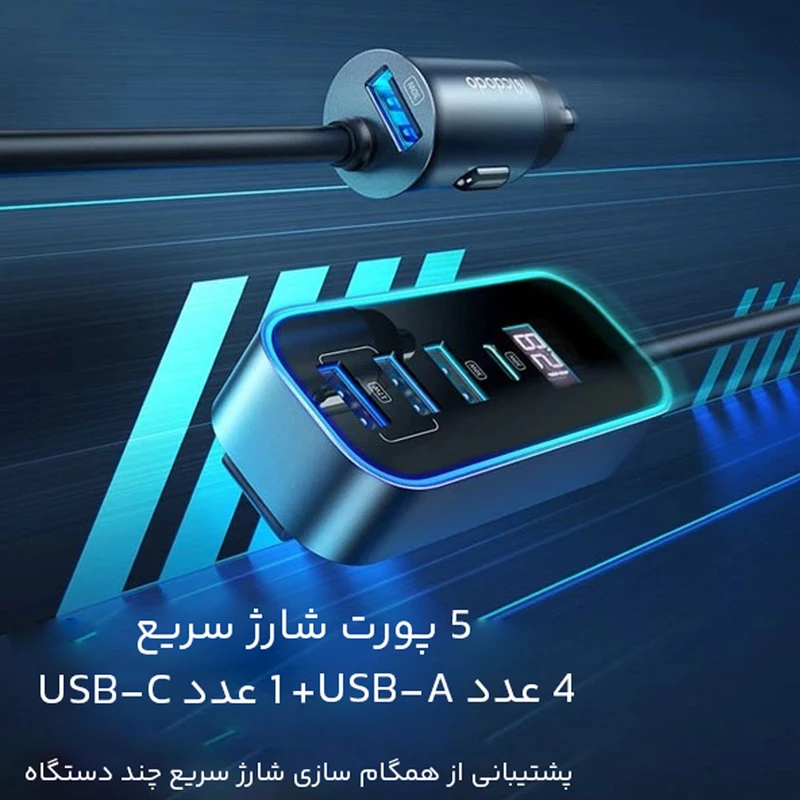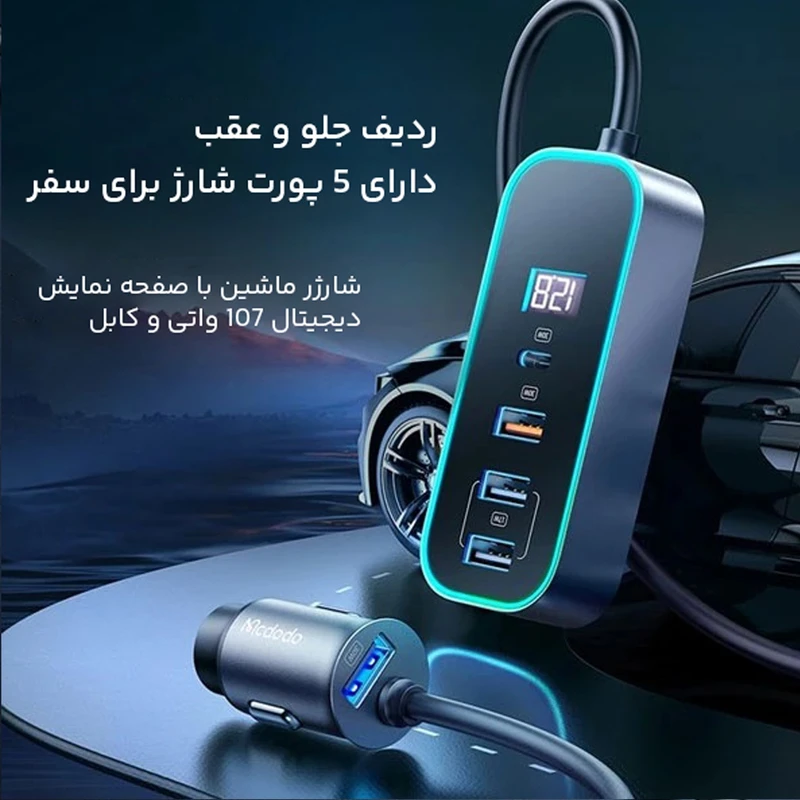 شارژر فندکی 5 پورت 107 وات مک دودو CC-1900 - فناوری Quick Charge 3.0