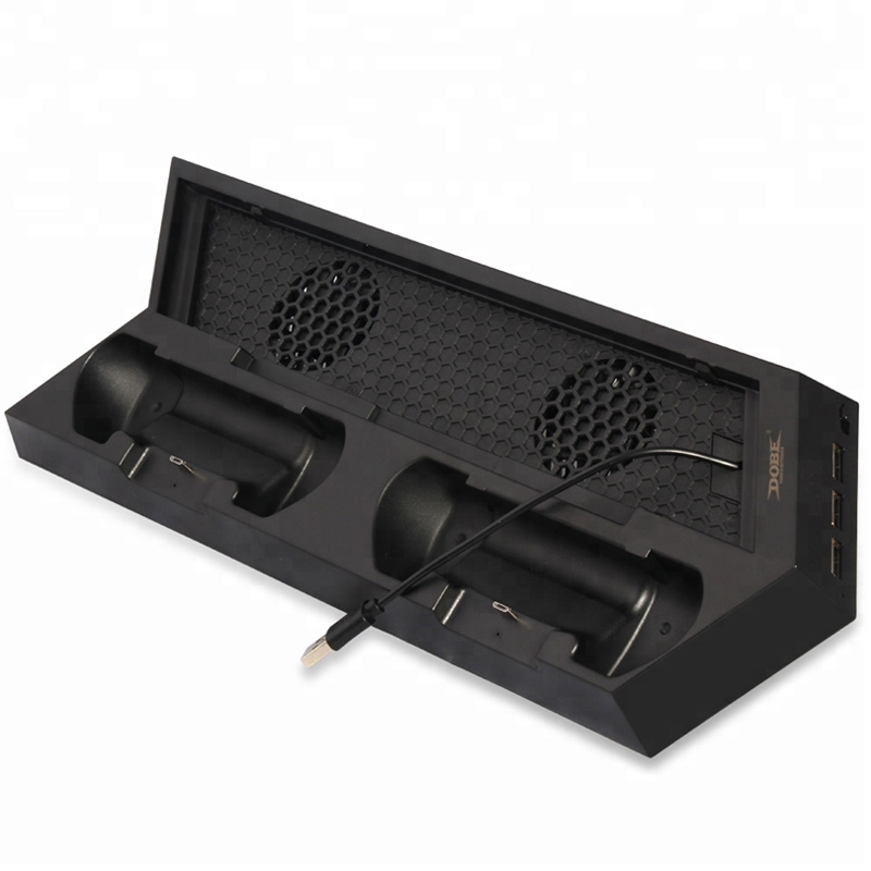 Dobe از برندهای معتبر در تولید لوازم جانبی مخصوص کنسول های بازی می باشد که محصولات باکیفیت و با ویژگی های کاربردی را وارد بازار می کند. این برند پایه نگهدارنده به مدل TP4-023B را معرفی کرده که به صورت چند منظوره طراحی شده است و قابلیت شارژ و خنک کنندگی را به همراه دارد. این دستگاه دارای دو جایگاه برای قرار دادن دسته های بازی DualShocK 4 پلی استیشن ۴ می باشد و امکان شارژ همزمان برای هر دو کنترلر وجود دارد که این پایه می تواند در مدت زمان حدود ۲٫۵ تا ۳ ساعت، هر دو دسته بازی را به طور کامل از طریق کانکتورئ میکرو یو اس بی شارژ کند. یک محفظه برای گذاشتن کنسول بازی به صورت ایستاده نیز بر روی این محصول تعبیه شده که با داشتن ۲ فن قدرتمند، خنک کنندگی مناسبی را برای کمک به دفع دمای داخلی پلی استیشن انجام می دهد. فن ها برای انجام فعالیت خود با سرعت چرخش ۵۰۰۰ دور در دقیقه توسط کابل USB به کنسول متصل می شوند تا انرژی برق مورد نیاز خود را تامین کنند.