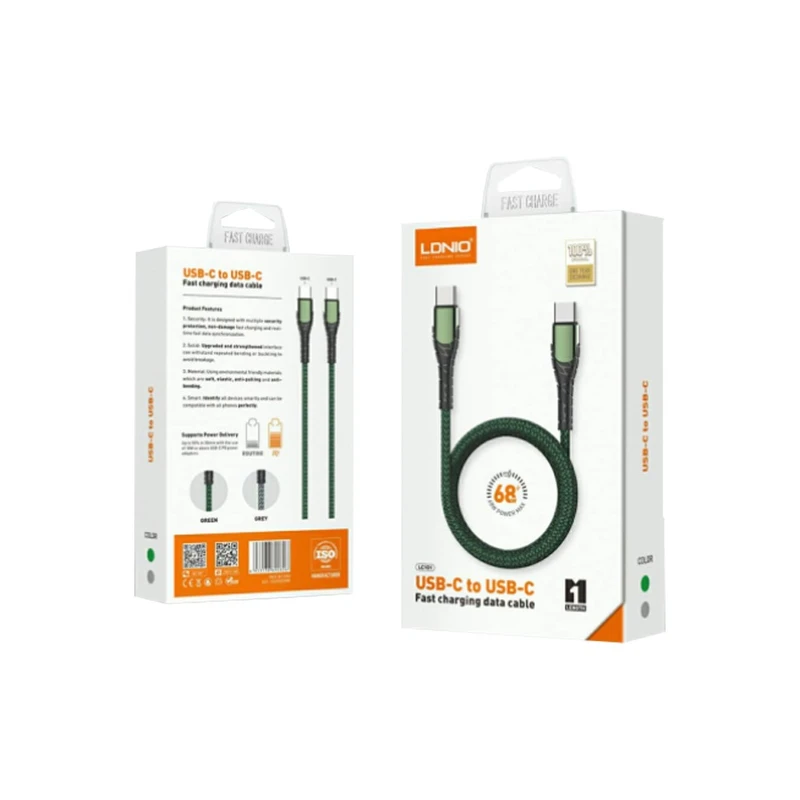 کابل دو سر تایپ سی LDNIO مدل LC101 ویژگی 65 وات