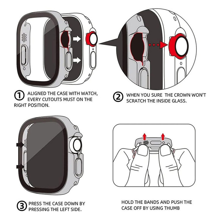 کاور واچ من مدل FULL COVER ، بدنهای از جنس پلیکربنات دارد. این متریال نسبت به TPU سختتر بوده و با اینکه نسبت به آن انعطافپذیری کمتری دارد ولی محافظ قویتر و مستحکمتری محسوب میشود. هرچند سخت بودن این کاور اختلالی در نصب آن ایجاد نمیکند و با کمی دقت میتوان به آسانی آن را روی ساعت نصب نمود. برشکاری دقیق کاور در قسمت دکمهها و پورتها سبب شده تا در دسترسی به آنها محدودیتی ایجاد نشود. علاوه بر این ضخامت کم این محصول واچ شما را بیش از حد برجسته نمیکند و کاملا با ابعاد ساعت هماهنگ است. این کاور مشکلی برای نصب هرگونه محافظ صفحه نمایش ایجاد نمی کند .گلس حرارتدیده متصل به این کاور نیز با بهرهگیری از یک طراحی هوشمندانه به خوبی فشار لمس را به صفحه نمایش ساعت انتقال میدهد و تا حد ممکن اختلالی در عملکرد تاچ ایجاد نمیکند.