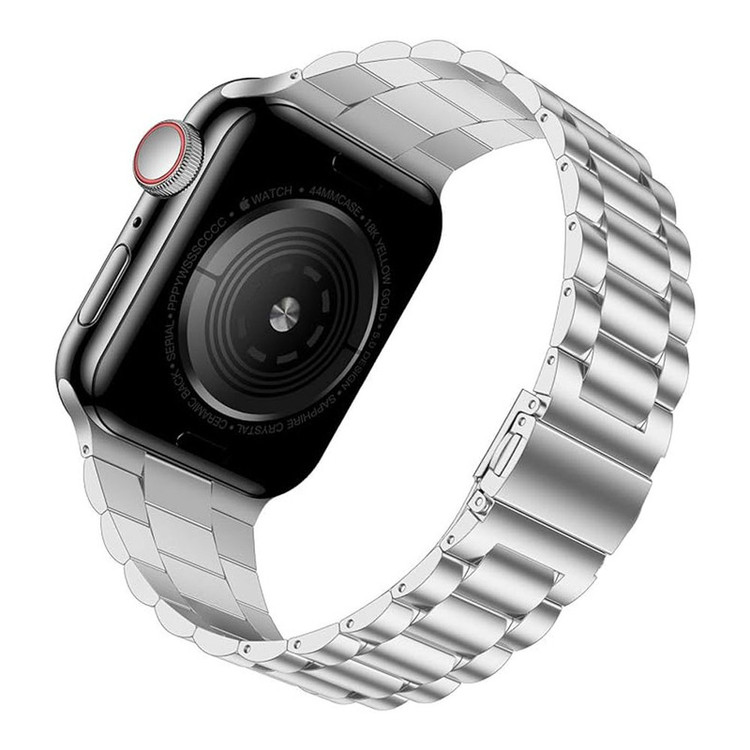 توضیحات: بند سه مهره واچ من از جنس استیل ضد زنگ و رنگ ثابت در رنگ بندی جذاب مشکی و نقره ای و طلایی و رزگلد و استارلایت (بژ) با قابلیت تنظیم و نصب سریع و آسان مناسب تمام سری های اپل واچ 44 میلی متری