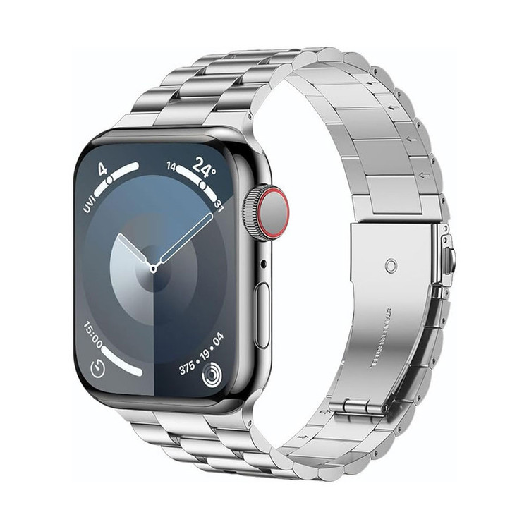 توضیحات: بند سه مهره واچ من از جنس استیل ضد زنگ و رنگ ثابت در رنگ بندی جذاب مشکی و نقره ای و طلایی و رزگلد و استارلایت (بژ) با قابلیت تنظیم و نصب سریع و آسان مناسب تمام سری های اپل واچ 42 میلی متری