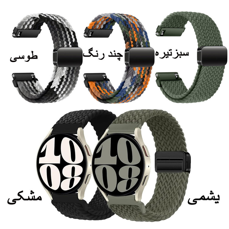 بند Braided Magnetic ساخته شده از پارچه با کیفیت و مرغوب می باشد. بافت ریز و منظم این بند و طراحی خاص آن ظاهری شیک و امروزی دارد . ثبات رنگ عالی دارد و در طول زمان رنگ خود را از دست نمی دهد. قفل این بند از نوع (Magnetic Clasp) می باشد و آهن رباهای به کار رفته در آن بسیار قوی می باشد و دیگر لازم نیست نگران باز شدن بند از دست خود باشید. وزن سبک و استفاده راحت این بند این قابلیت را به شما می دهد حتی با پوشیدن طولانی مدت آن مچ دست شما را خسته نمی کند و همچنین دست شما عرق نمیکند. یکی دیگر از ویژگی های منحصر به فرد این بند خاصیت کشسانی این بند می باشد که با انواع مچ دست سازگار بوده و می توانید سایز آن را تغییر بدهد. بخاطر جنس نخ به کار رفته شده در این پارچه برای پوست دست شما حساسیت ایجاد نمی کند. رنگ بندی بند ها در عکس های آلبوم نمایش داده شده است ، لطفا در هنگام سفارش به آن ها توجه کنید. مناسب برای آقایان و بانوان می باشد .