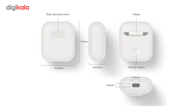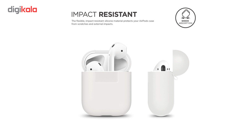 مقاوم در برابر ضربه قابلیت محافظت از کیس هدفون اپل AirPods در برابر ضربه و خط و خش دارای محفظهی ورودی شارژ هدفون اپل AirPods